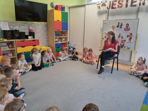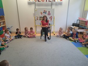 23 września w ramach Akcji "Rodzice czytają dzieciom" grupę Biedronki odwiedziła Mama Madzi. Pani Dorota przeczytała dzieciom bajkę pt. "Kopciuszek". Dzieci z uwagą i zainteresowaniem słuchały bajki o czym świadczyły odpowiedzi na pytania zadawane po przeczytaniu bajki przez mamę Madzi. Akcja ma na celu rozwijanie wśród dzieci zainteresowania czytelnictwem, poznawanie literatury dziecięcej oraz nawiązywania współpracy z rodzicami,. Serdecznie dziękujemy Pani Dorotce za poświęcony czas.