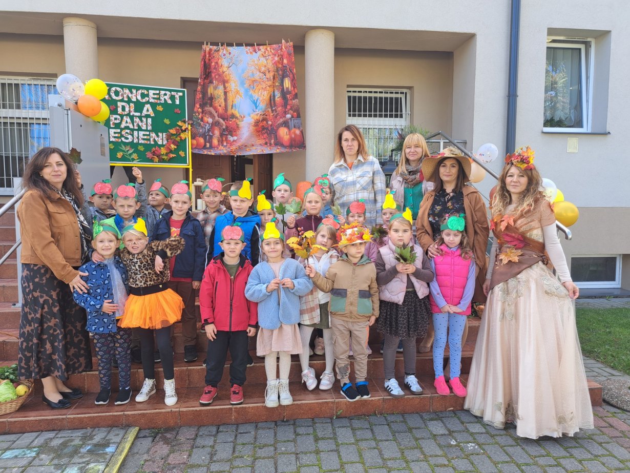 2025-09-2424 września nasze przedszkolaki, ubrane w piękne, kolorowe stroje oficjalnie powitały nową porę roku Jesień przygotowując Koncert dla Pani Jesieni.