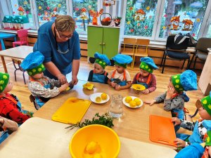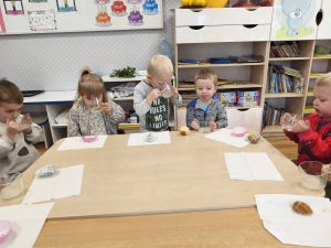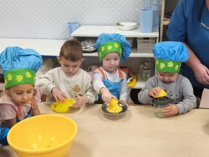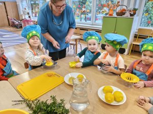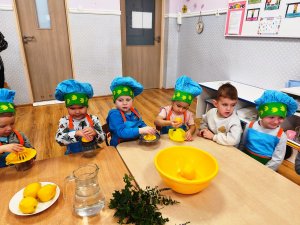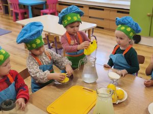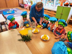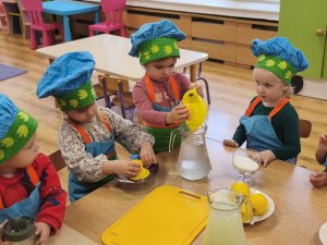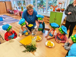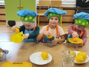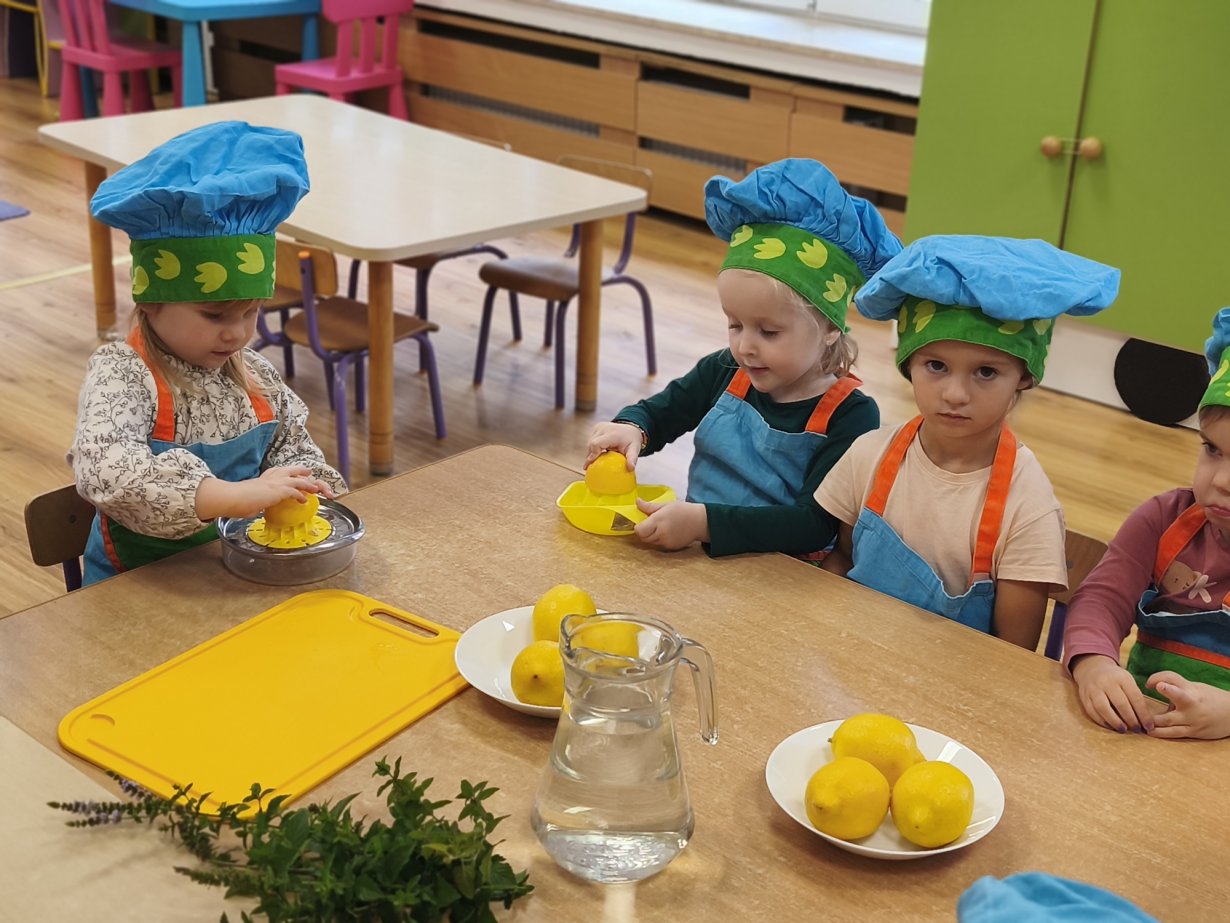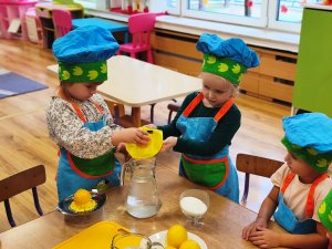 Jako podsumowanie tej inicjatywy dzieci z grupy Pszczółki przygotowywały pyszną lemoniadę dla grupy Kotki. Grupa Motylki natomiast przygotowała babeczki dla Pszczółek. To były miłe chwile.